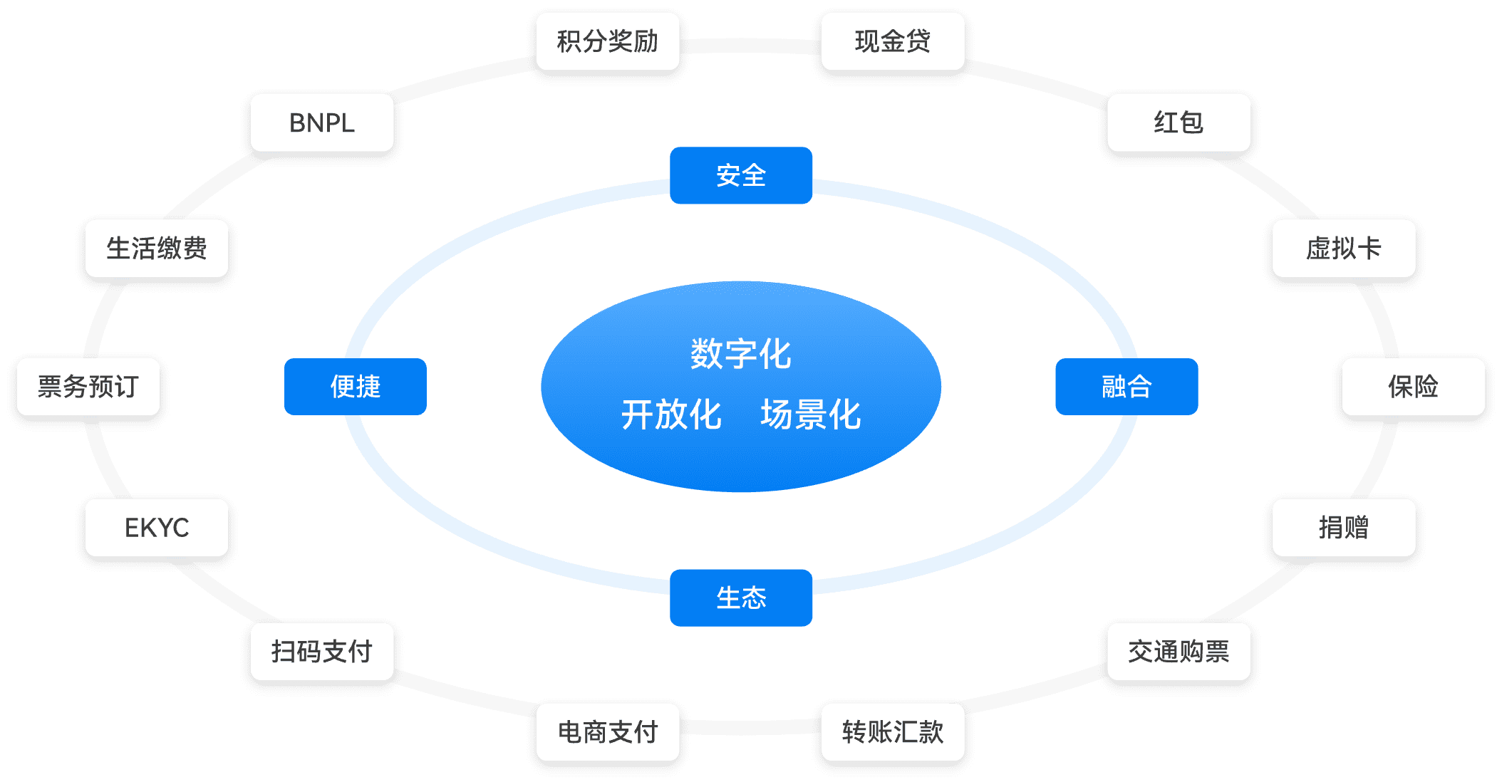 基于数字钱包产品的金融支付服务平台,通过整合第三方服务资源和产品集成,不仅提供基础的转账汇款功能,还扩展至生活缴费、BNPL(先买后付)、现金贷以及理财等多元化金融服务。这一升级,将数字钱包转型为一个全面的数字生活开放平台,构建起一个充满活力的数字商业生态系统。通过这种创新的整合,平台不仅获得了市场竞争优势,还为推动数字经济的发展贡献了重要力量。